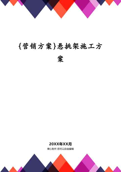 本站资深用户发布了最新的《{营销方案}悬挑架施工方案》文档,以下内容为预览,详细内容可下载阅读。 声明:本站所有文章,如无特殊说明或标注,均为本站原创发布。任何个人或组织,在未征得本站同意时,禁止复制、盗用、采集、发布本站内容到任何网站、书籍等各类媒体平台。如若本站内容侵犯了原著者的合法权益,可联系我们进行处理。
