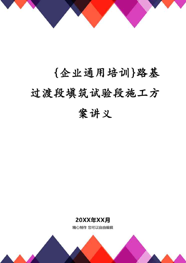 本站资深用户发布了最新的《{企业通用培训}路基过渡段填筑试验段施工方案讲义》文档,以下内容为预览,详细内容可下载阅读。 声明:本站所有文章,如无特殊说明或标注,均为本站原创发布。任何个人或组织,在未征得本站同意时,禁止复制、盗用、采集、发布本站内容到任何网站、书籍等各类媒体平台。如若本站内容侵犯了原著者的合法权益,可联系我们进行处理。