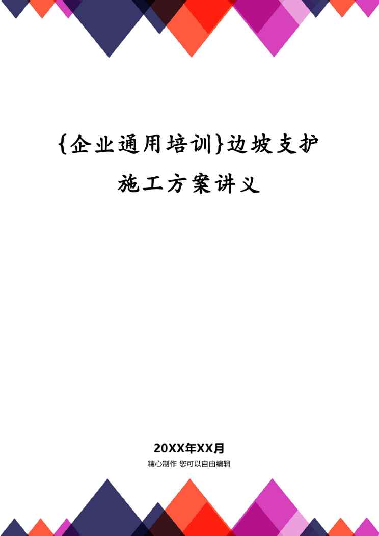 本站正式发布了《{企业通用培训}边坡支护施工方案讲义》文档,文档详细内容可下载阅读。 声明:本站所有文章,如无特殊说明或标注,均为本站原创发布。任何个人或组织,在未征得本站同意时,禁止复制、盗用、采集、发布本站内容到任何网站、书籍等各类媒体平台。如若本站内容侵犯了原著者的合法权益,可联系我们进行处理。