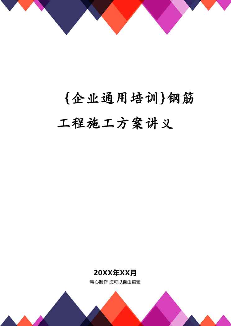 不久前,最新文档《{企业通用培训}钢筋工程施工方案讲义》全文正式在本站发布,感兴趣的用户可以下载阅读。 声明:本站所有文章,如无特殊说明或标注,均为本站原创发布。任何个人或组织,在未征得本站同意时,禁止复制、盗用、采集、发布本站内容到任何网站、书籍等各类媒体平台。如若本站内容侵犯了原著者的合法权益,可联系我们进行处理。