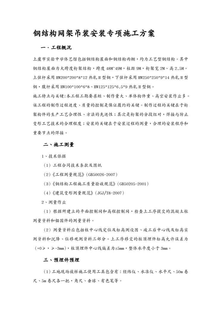 本站资深用户发布了最新的《{企业通用培训}钢结构吊装安装专项施工方案讲义》文档,以下内容为预览,详细内容可下载阅读。 声明:本站所有文章,如无特殊说明或标注,均为本站原创发布。任何个人或组织,在未征得本站同意时,禁止复制、盗用、采集、发布本站内容到任何网站、书籍等各类媒体平台。如若本站内容侵犯了原著者的合法权益,可联系我们进行处理。