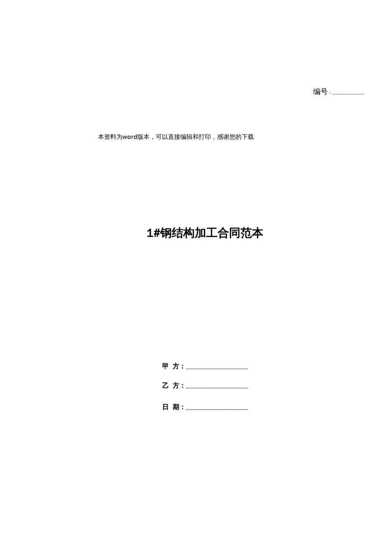 不久前,最新文档《1#钢结构加工合同范本》全文正式在本站发布,感兴趣的用户可以下载阅读。 声明:本站所有文章,如无特殊说明或标注,均为本站原创发布。任何个人或组织,在未征得本站同意时,禁止复制、盗用、采集、发布本站内容到任何网站、书籍等各类媒体平台。如若本站内容侵犯了原著者的合法权益,可联系我们进行处理。