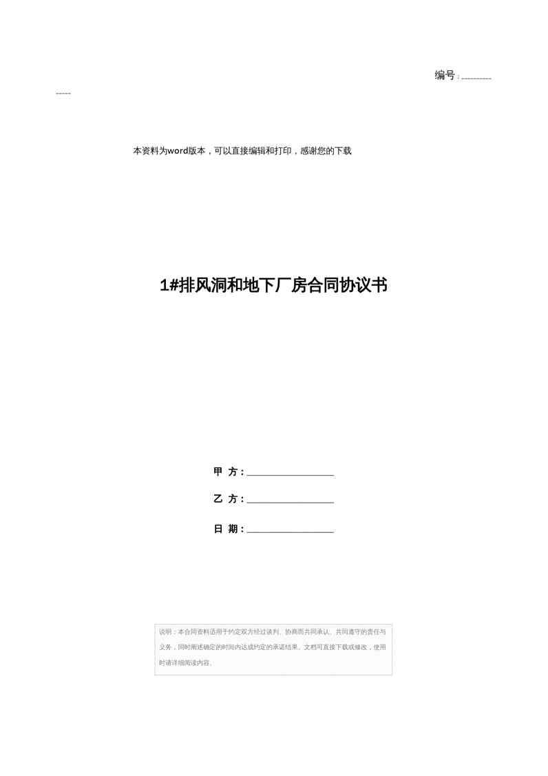 不久前,最新文档《1#排风洞和地下厂房合同协议书》全文正式在本站发布,感兴趣的用户可以下载阅读。 声明:本站所有文章,如无特殊说明或标注,均为本站原创发布。任何个人或组织,在未征得本站同意时,禁止复制、盗用、采集、发布本站内容到任何网站、书籍等各类媒体平台。如若本站内容侵犯了原著者的合法权益,可联系我们进行处理。