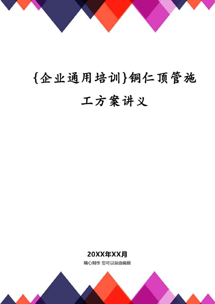 本站正式发布了《{企业通用培训}铜仁顶管施工方案讲义》文档,文档详细内容可下载阅读。 声明:本站所有文章,如无特殊说明或标注,均为本站原创发布。任何个人或组织,在未征得本站同意时,禁止复制、盗用、采集、发布本站内容到任何网站、书籍等各类媒体平台。如若本站内容侵犯了原著者的合法权益,可联系我们进行处理。
