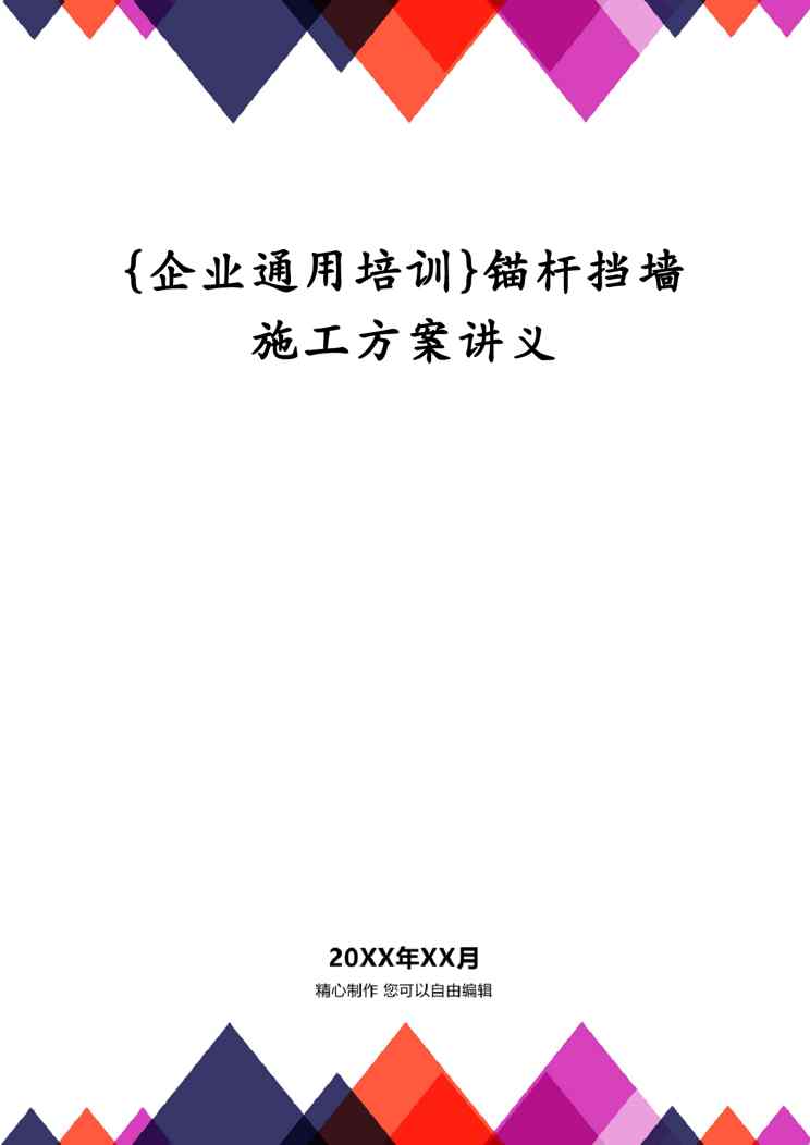 本站正式发布了《{企业通用培训}锚杆挡墙施工方案讲义》文档,文档详细内容可下载阅读。 声明:本站所有文章,如无特殊说明或标注,均为本站原创发布。任何个人或组织,在未征得本站同意时,禁止复制、盗用、采集、发布本站内容到任何网站、书籍等各类媒体平台。如若本站内容侵犯了原著者的合法权益,可联系我们进行处理。
