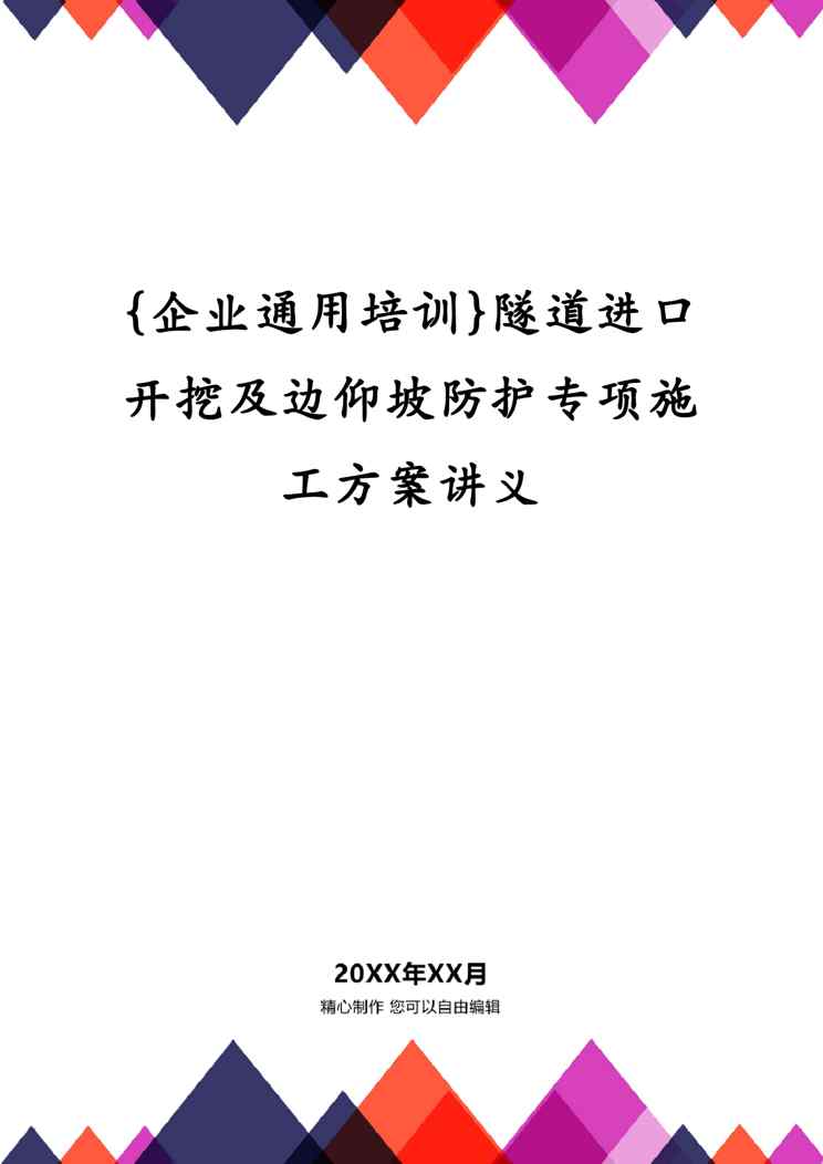 不久前,最新文档《{企业通用培训}隧道进口开挖及边仰坡防护专项施工方案讲义》全文正式在本站发布,感兴趣的用户可以下载阅读。 声明:本站所有文章,如无特殊说明或标注,均为本站原创发布。任何个人或组织,在未征得本站同意时,禁止复制、盗用、采集、发布本站内容到任何网站、书籍等各类媒体平台。如若本站内容侵犯了原著者的合法权益,可联系我们进行处理。