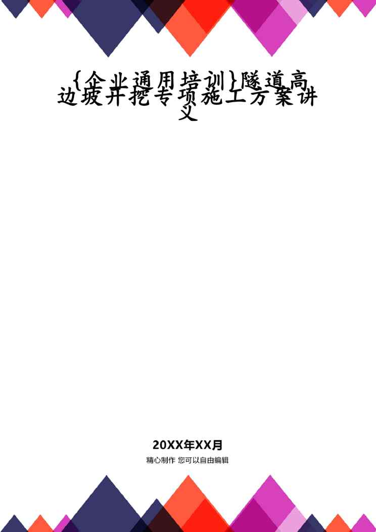 不久前,最新文档《{企业通用培训}隧道高边坡开挖专项施工方案讲义》全文正式在本站发布,感兴趣的用户可以下载阅读。 声明:本站所有文章,如无特殊说明或标注,均为本站原创发布。任何个人或组织,在未征得本站同意时,禁止复制、盗用、采集、发布本站内容到任何网站、书籍等各类媒体平台。如若本站内容侵犯了原著者的合法权益,可联系我们进行处理。