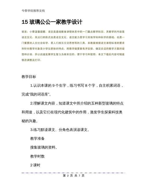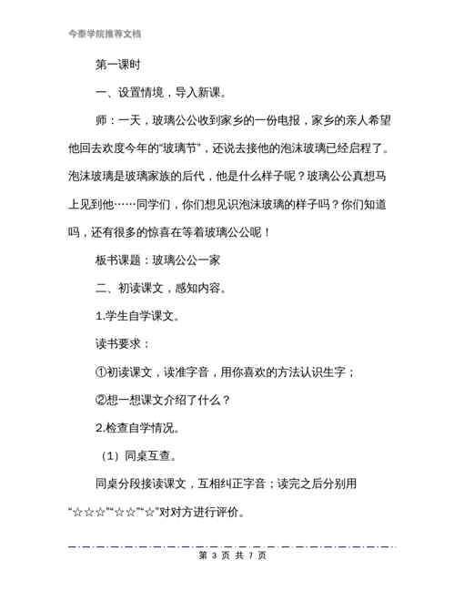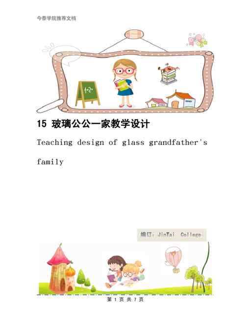 本站资深用户发布了最新的《15 玻璃公公一家教学设计》文档,以下内容为预览,详细内容可下载阅读。 声明:本站所有文章,如无特殊说明或标注,均为本站原创发布。任何个人或组织,在未征得本站同意时,禁止复制、盗用、采集、发布本站内容到任何网站、书籍等各类媒体平台。如若本站内容侵犯了原著者的合法权益,可联系我们进行处理。