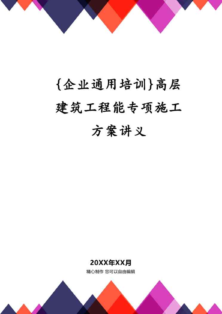 本站资深用户发布了最新的《{企业通用培训}高层建筑工程能专项施工方案讲义》文档,以下内容为预览,详细内容可下载阅读。 声明:本站所有文章,如无特殊说明或标注,均为本站原创发布。任何个人或组织,在未征得本站同意时,禁止复制、盗用、采集、发布本站内容到任何网站、书籍等各类媒体平台。如若本站内容侵犯了原著者的合法权益,可联系我们进行处理。