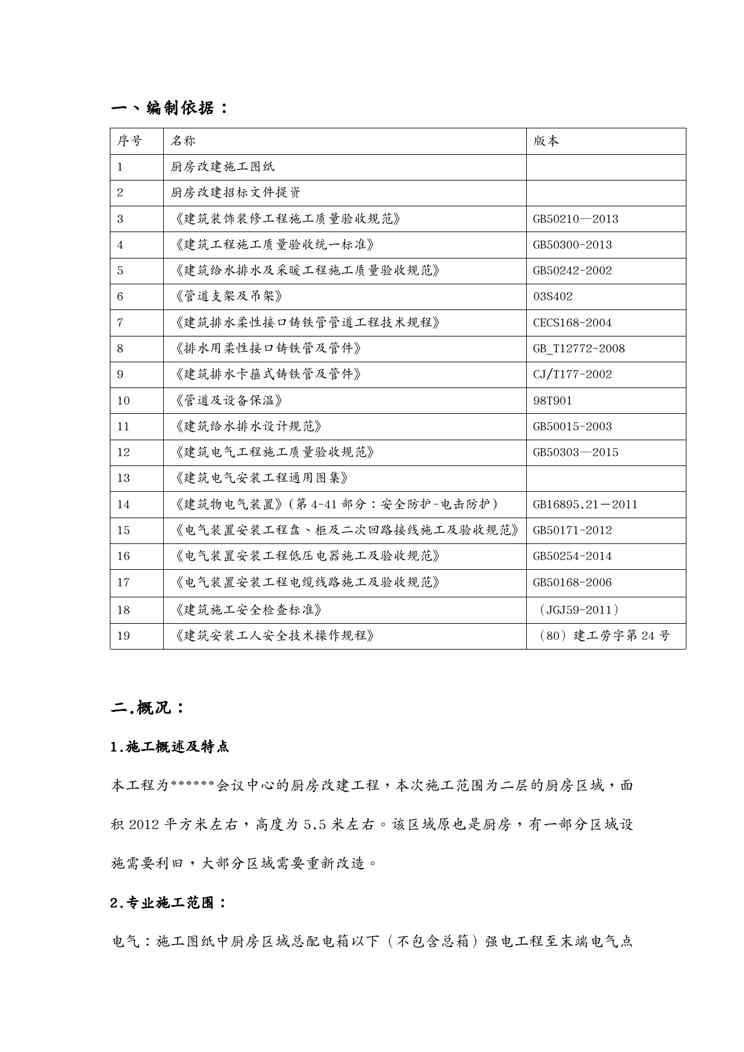 本站资深用户发布了最新的《{会议管理}某某会议中心酒店厨房改造工程施工方案》文档,以下内容为预览,详细内容可下载阅读。 声明:本站所有文章,如无特殊说明或标注,均为本站原创发布。任何个人或组织,在未征得本站同意时,禁止复制、盗用、采集、发布本站内容到任何网站、书籍等各类媒体平台。如若本站内容侵犯了原著者的合法权益,可联系我们进行处理。
