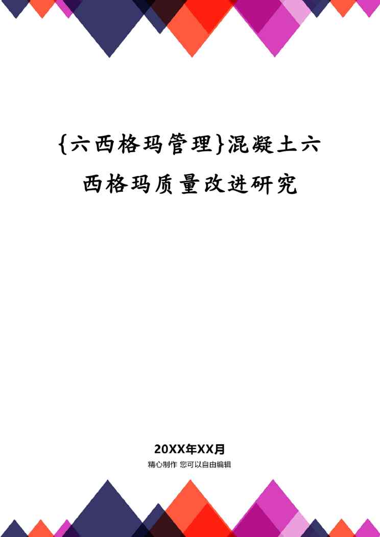 本站正式发布了《{六西格玛管理}混凝土六西格玛质量改进研究》文档,文档详细内容可下载阅读。 声明:本站所有文章,如无特殊说明或标注,均为本站原创发布。任何个人或组织,在未征得本站同意时,禁止复制、盗用、采集、发布本站内容到任何网站、书籍等各类媒体平台。如若本站内容侵犯了原著者的合法权益,可联系我们进行处理。