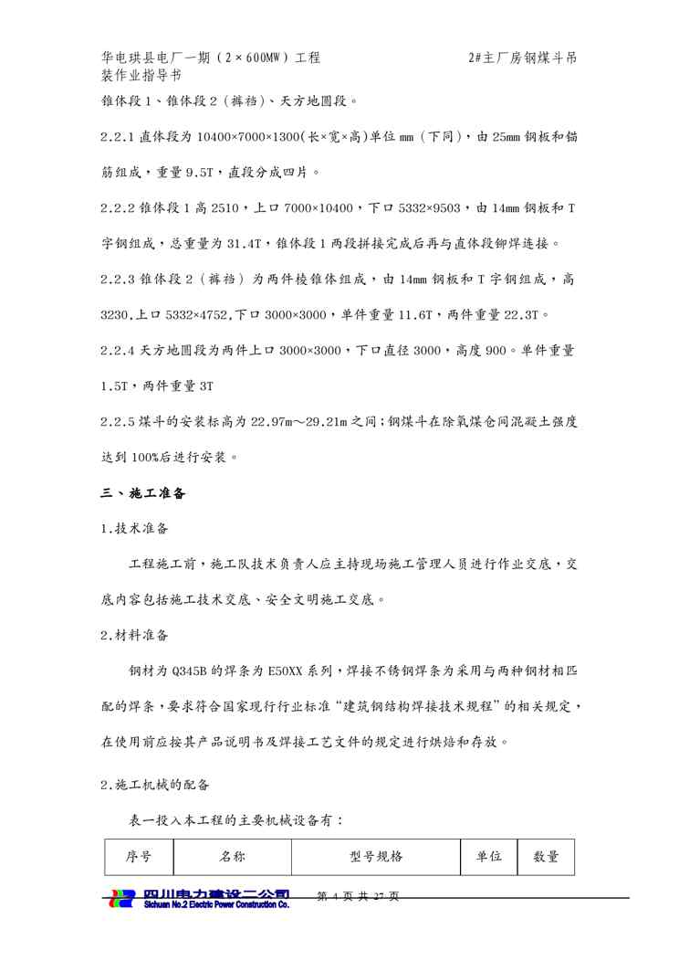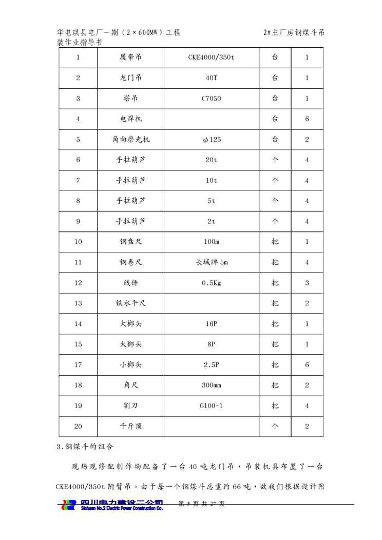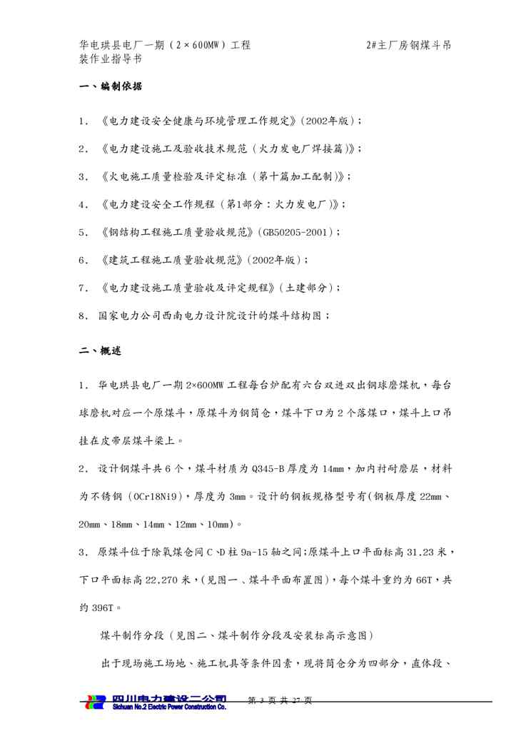 本站资深用户发布了最新的《{冶金行业管理}2主厂房钢煤斗吊装作业指导书》文档,以下内容为预览,详细内容可下载阅读。 声明:本站所有文章,如无特殊说明或标注,均为本站原创发布。任何个人或组织,在未征得本站同意时,禁止复制、盗用、采集、发布本站内容到任何网站、书籍等各类媒体平台。如若本站内容侵犯了原著者的合法权益,可联系我们进行处理。
