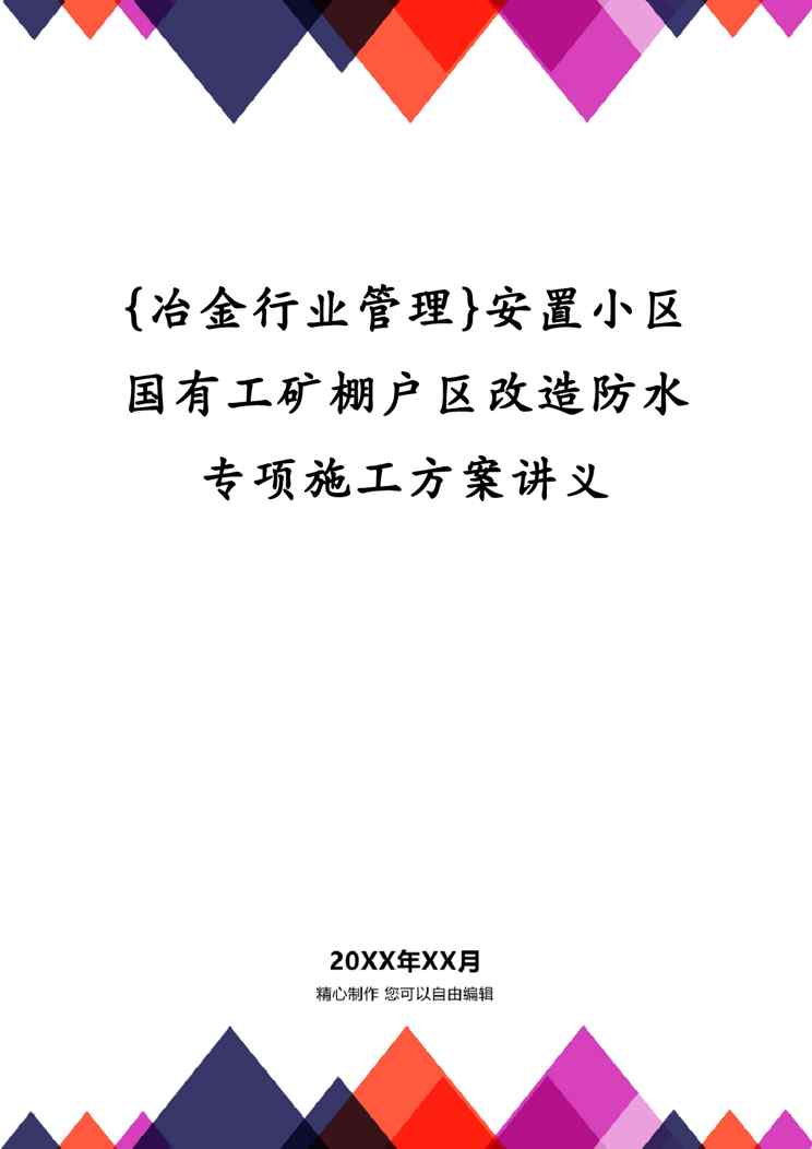 本站资深用户发布了最新的《{冶金行业管理}安置小区国有工矿棚户区改造防水专项施工方案讲义》文档,以下内容为预览,详细内容可下载阅读。