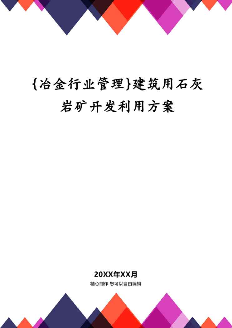 本站正式发布了《{冶金行业管理}建筑用石灰岩矿开发利用方案》文档,文档详细内容可下载阅读。 声明:本站所有文章,如无特殊说明或标注,均为本站原创发布。任何个人或组织,在未征得本站同意时,禁止复制、盗用、采集、发布本站内容到任何网站、书籍等各类媒体平台。如若本站内容侵犯了原著者的合法权益,可联系我们进行处理。
