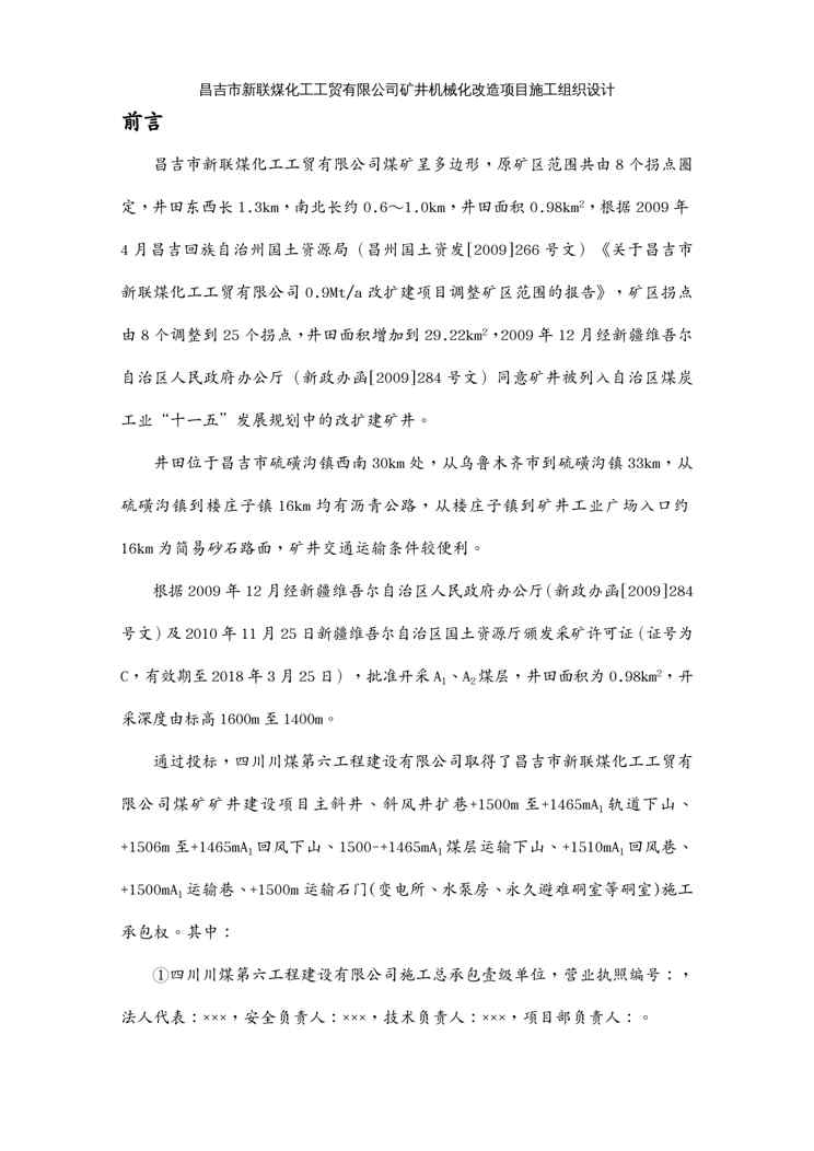 不久前,最新文档《{冶金行业管理}昌吉市新联煤矿煤矿施工组织设计修改版》全文正式在本站发布,感兴趣的用户可以下载阅读。 声明:本站所有文章,如无特殊说明或标注,均为本站原创发布。任何个人或组织,在未征得本站同意时,禁止复制、盗用、采集、发布本站内容到任何网站、书籍等各类媒体平台。如若本站内容侵犯了原著者的合法权益,可联系我们进行处理。