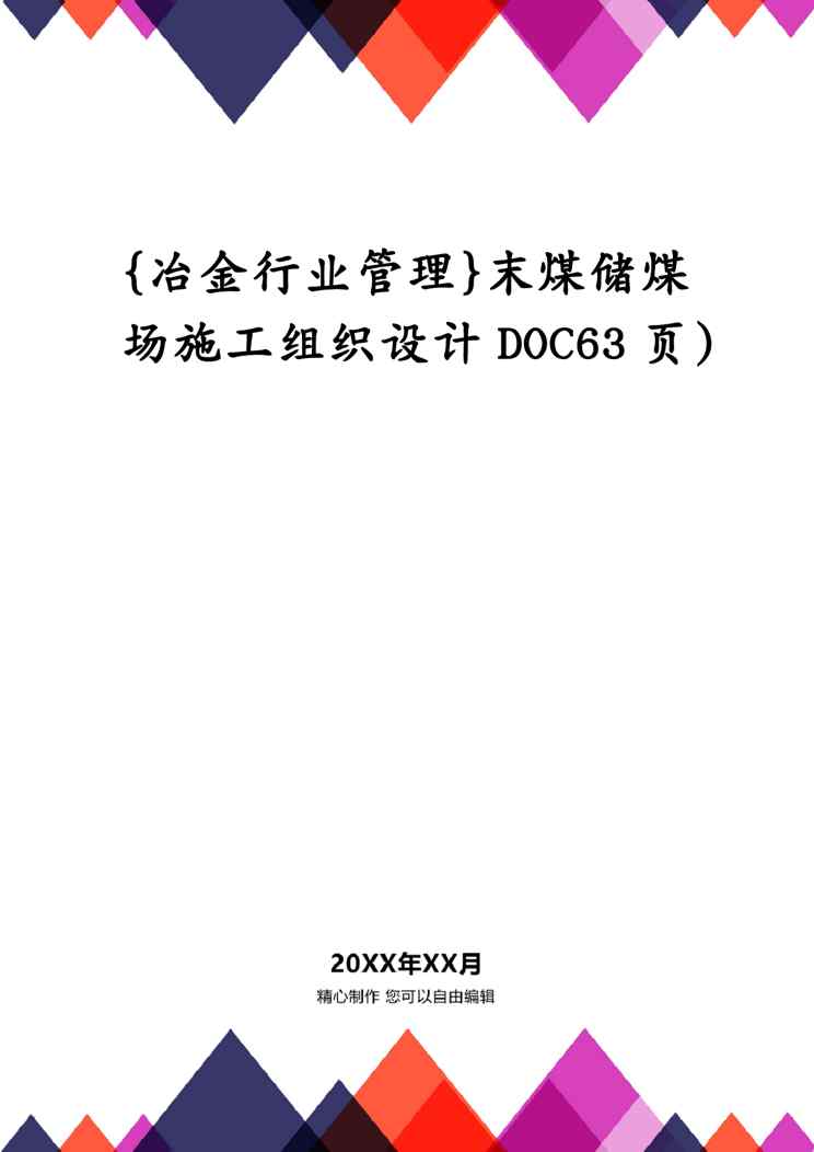 本站资深用户发布了最新的《{冶金行业管理}末煤储煤场施工组织设计DOC63页)》文档,以下内容为预览,详细内容可下载阅读。 声明:本站所有文章,如无特殊说明或标注,均为本站原创发布。任何个人或组织,在未征得本站同意时,禁止复制、盗用、采集、发布本站内容到任何网站、书籍等各类媒体平台。如若本站内容侵犯了原著者的合法权益,可联系我们进行处理。