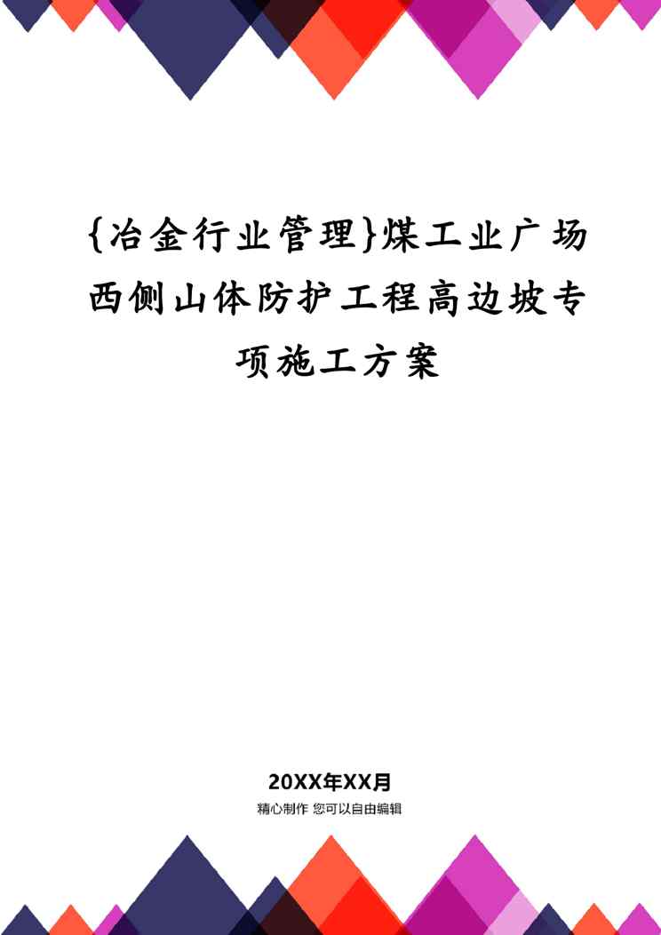 本站资深用户发布了最新的《{冶金行业管理}煤工业广场西侧山体防护工程高边坡专项施工方案》文档,以下内容为预览,详细内容可下载阅读。 声明:本站所有文章,如无特殊说明或标注,均为本站原创发布。任何个人或组织,在未征得本站同意时,禁止复制、盗用、采集、发布本站内容到任何网站、书籍等各类媒体平台。如若本站内容侵犯了原著者的合法权益,可联系我们进行处理。