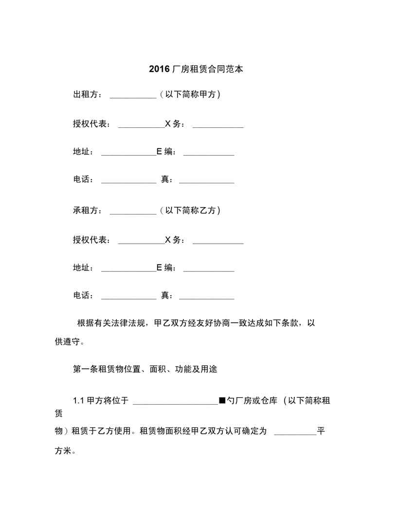 2016厂房租赁合同范本范本2016厂房租赁合同范本范本2016厂房租赁合同范本范本