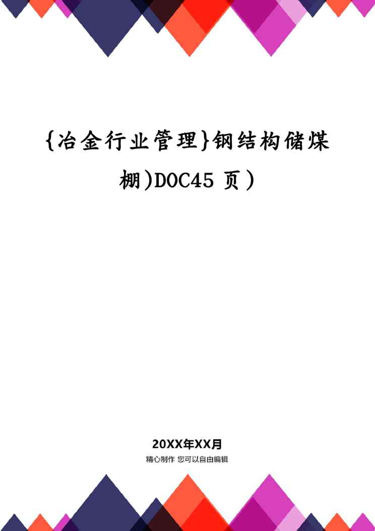 不久前,最新文档《{冶金行业管理}钢结构储煤棚)DOC45页)》全文正式在本站发布,感兴趣的用户可以下载阅读。 声明:本站所有文章,如无特殊说明或标注,均为本站原创发布。任何个人或组织,在未征得本站同意时,禁止复制、盗用、采集、发布本站内容到任何网站、书籍等各类媒体平台。如若本站内容侵犯了原著者的合法权益,可联系我们进行处理。
