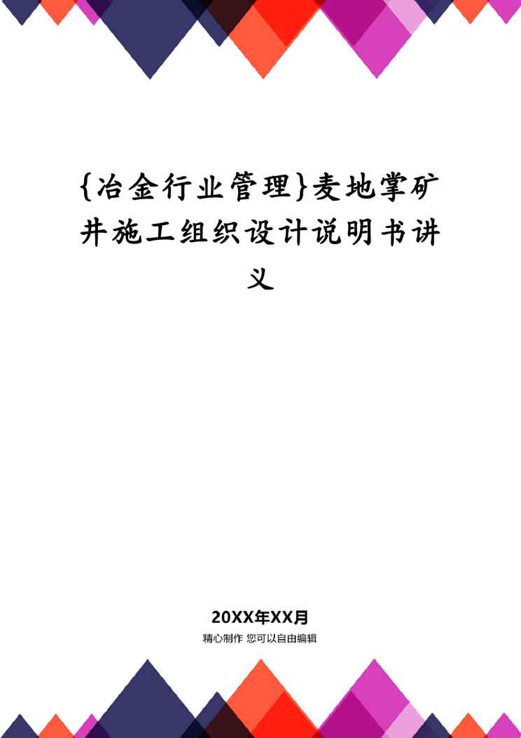 本站正式发布了《{冶金行业管理}麦地掌矿井施工组织设计说明书讲义》文档,文档详细内容可下载阅读。