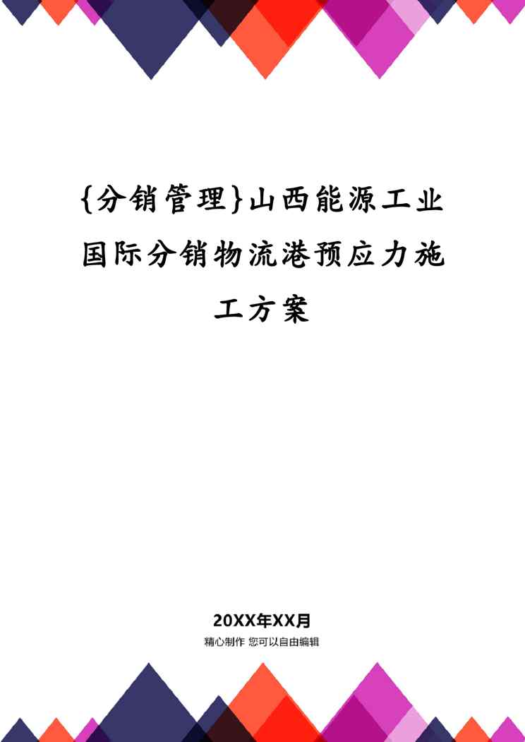 本站资深用户发布了最新的《{分销管理}山西能源工业国际分销物流港预应力施工方案》文档,以下内容为预览,详细内容可下载阅读。 声明:本站所有文章,如无特殊说明或标注,均为本站原创发布。任何个人或组织,在未征得本站同意时,禁止复制、盗用、采集、发布本站内容到任何网站、书籍等各类媒体平台。如若本站内容侵犯了原著者的合法权益,可联系我们进行处理。