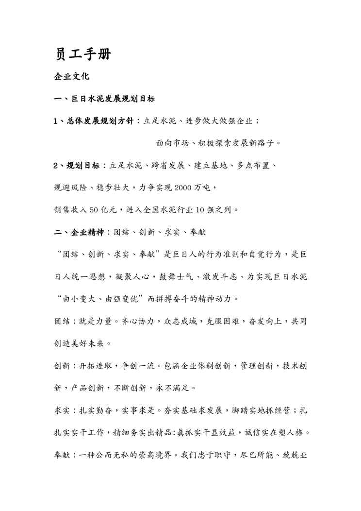 本站资深用户发布了最新的《{员工手册}水泥厂员工手册全厂规程职责》文档,以下内容为预览,详细内容可下载阅读。 声明:本站所有文章,如无特殊说明或标注,均为本站原创发布。任何个人或组织,在未征得本站同意时,禁止复制、盗用、采集、发布本站内容到任何网站、书籍等各类媒体平台。如若本站内容侵犯了原著者的合法权益,可联系我们进行处理。
