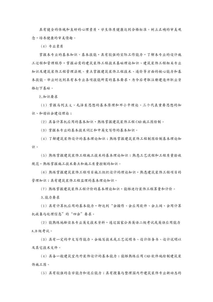 不久前,最新文档《{员工管理}建筑装饰工程技术专业人才培养方案1609152320》全文正式在本站发布,感兴趣的用户可以下载阅读。 声明:本站所有文章,如无特殊说明或标注,均为本站原创发布。任何个人或组织,在未征得本站同意时,禁止复制、盗用、采集、发布本站内容到任何网站、书籍等各类媒体平台。如若本站内容侵犯了原著者的合法权益,可联系我们进行处理。