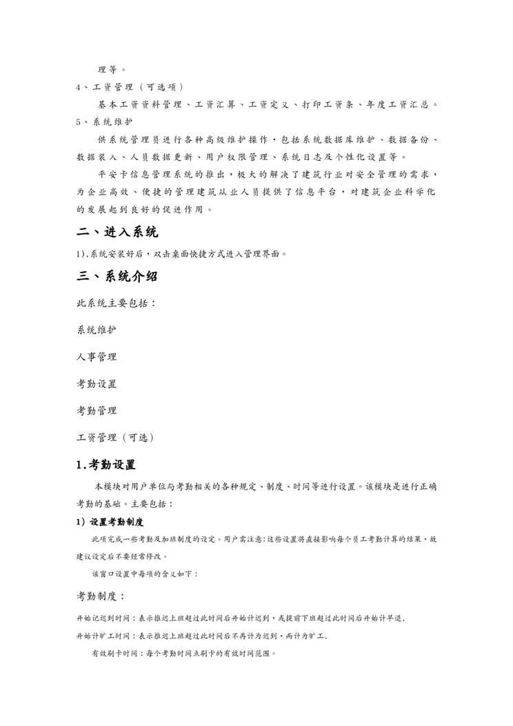 本站资深用户发布了最新的《{员工管理}某市市建筑从业人员平安卡管理系统操作说明》文档,以下内容为预览,详细内容可下载阅读。 声明:本站所有文章,如无特殊说明或标注,均为本站原创发布。任何个人或组织,在未征得本站同意时,禁止复制、盗用、采集、发布本站内容到任何网站、书籍等各类媒体平台。如若本站内容侵犯了原著者的合法权益,可联系我们进行处理。