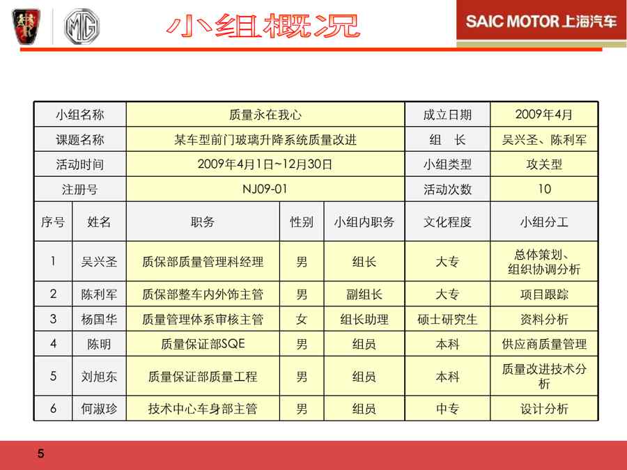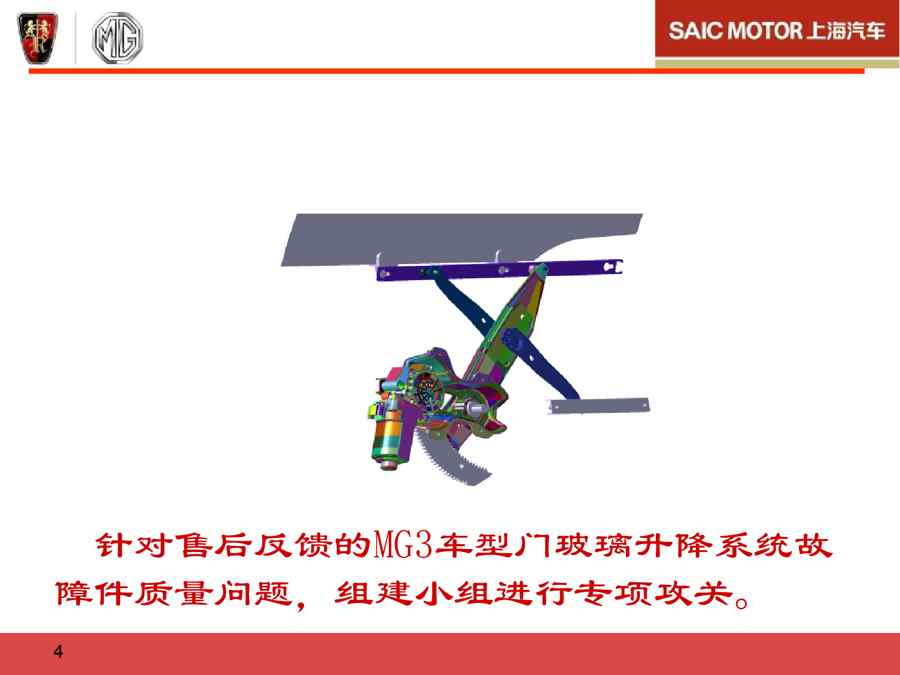 本站资深用户发布了最新的《{品质管理QC七大手法}MG3前门玻璃升降系统质量改进优秀QC成果》文档,以下内容为预览,详细内容可下载阅读。 声明:本站所有文章,如无特殊说明或标注,均为本站原创发布。任何个人或组织,在未征得本站同意时,禁止复制、盗用、采集、发布本站内容到任何网站、书籍等各类媒体平台。如若本站内容侵犯了原著者的合法权益,可联系我们进行处理。
