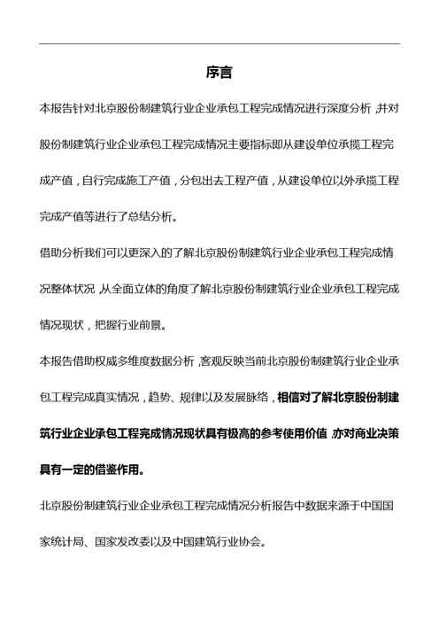 不久前,最新文档《2018版北京股份制建筑行业企业承包工程完成情况分析报告》全文正式在本站发布,感兴趣的用户可以下载阅读。 声明:本站所有文章,如无特殊说明或标注,均为本站原创发布。任何个人或组织,在未征得本站同意时,禁止复制、盗用、采集、发布本站内容到任何网站、书籍等各类媒体平台。如若本站内容侵犯了原著者的合法权益,可联系我们进行处理。