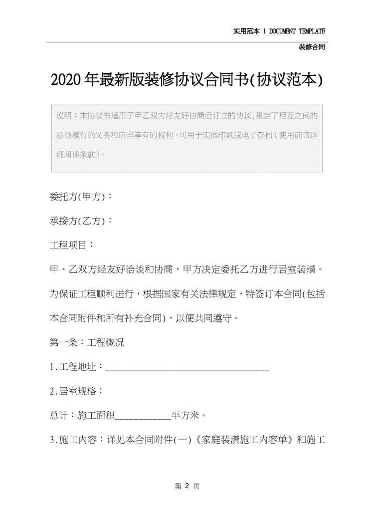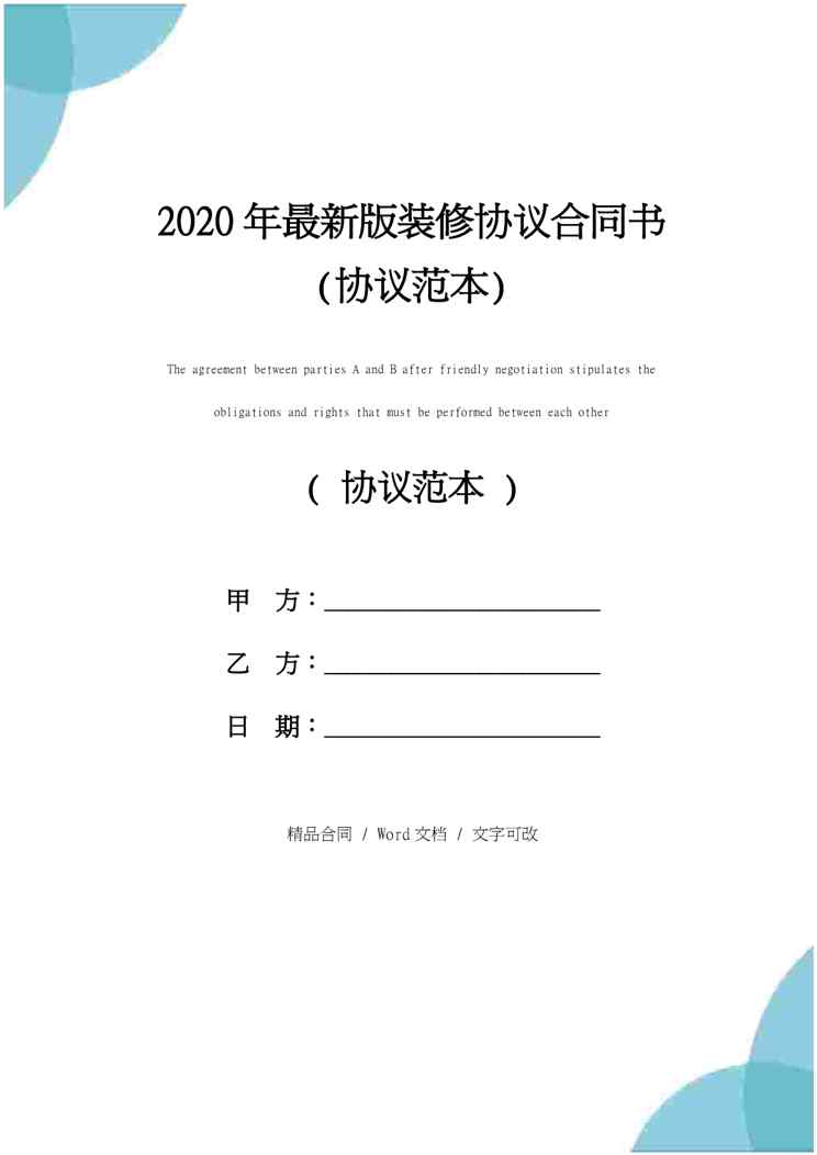 本站资深用户发布了最新的《2020年最新版装修协议合同书(协议范本)》文档,以下内容为预览,详细内容可下载阅读。 声明:本站所有文章,如无特殊说明或标注,均为本站原创发布。任何个人或组织,在未征得本站同意时,禁止复制、盗用、采集、发布本站内容到任何网站、书籍等各类媒体平台。如若本站内容侵犯了原著者的合法权益,可联系我们进行处理。