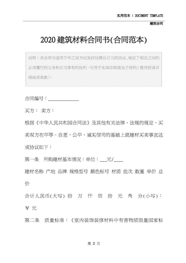 本站正式发布了《2020建筑材料合同书(合同范本)》文档,文档详细内容可下载阅读。 声明:本站所有文章,如无特殊说明或标注,均为本站原创发布。任何个人或组织,在未征得本站同意时,禁止复制、盗用、采集、发布本站内容到任何网站、书籍等各类媒体平台。如若本站内容侵犯了原著者的合法权益,可联系我们进行处理。
