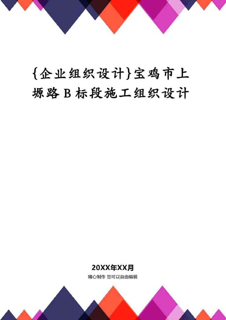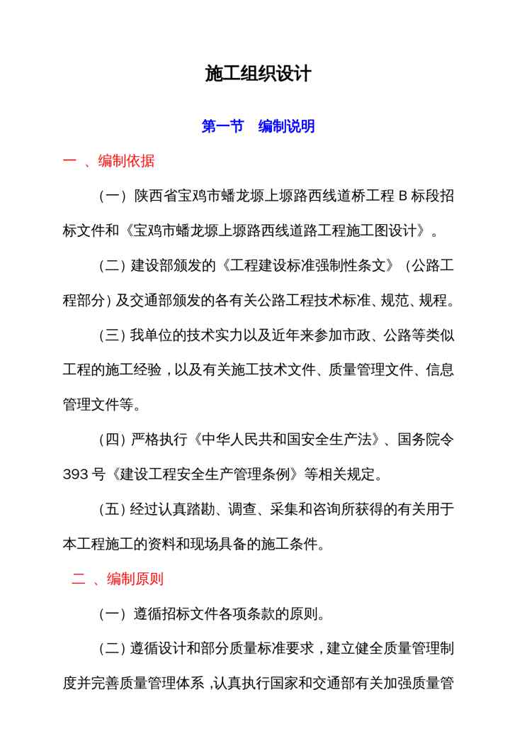 不久前,最新文档《{企业组织设计}宝鸡市上塬路B标段施工组织设计》全文正式在本站发布,感兴趣的用户可以下载阅读。 声明:本站所有文章,如无特殊说明或标注,均为本站原创发布。任何个人或组织,在未征得本站同意时,禁止复制、盗用、采集、发布本站内容到任何网站、书籍等各类媒体平台。如若本站内容侵犯了原著者的合法权益,可联系我们进行处理。