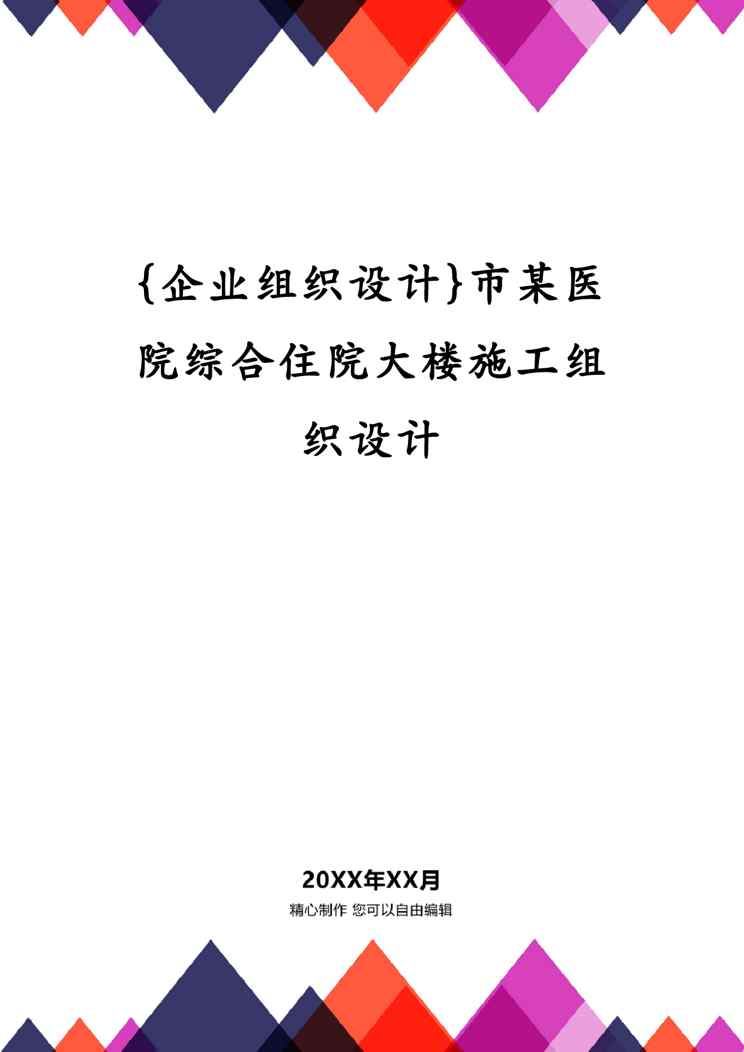 本站资深用户发布了最新的《{企业组织设计}市某医院综合住院大楼施工组织设计》文档,以下内容为预览,详细内容可下载阅读。 声明:本站所有文章,如无特殊说明或标注,均为本站原创发布。任何个人或组织,在未征得本站同意时,禁止复制、盗用、采集、发布本站内容到任何网站、书籍等各类媒体平台。如若本站内容侵犯了原著者的合法权益,可联系我们进行处理。