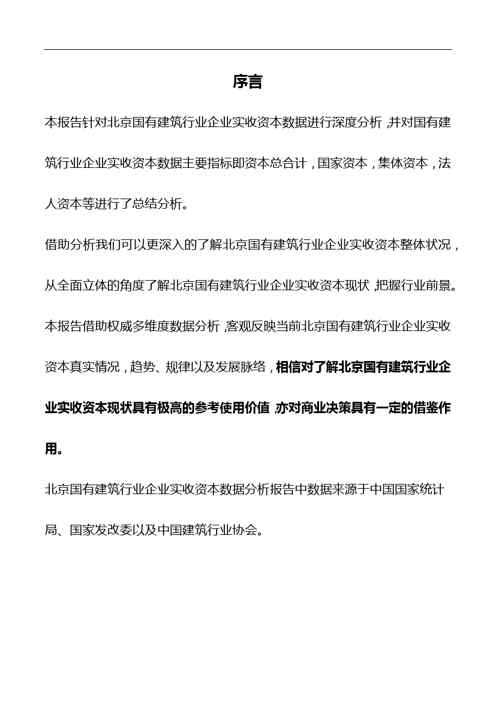 不久前,最新文档《2018版北京国有建筑行业企业实收资本数据分析报告》全文正式在本站发布,感兴趣的用户可以下载阅读。 声明:本站所有文章,如无特殊说明或标注,均为本站原创发布。任何个人或组织,在未征得本站同意时,禁止复制、盗用、采集、发布本站内容到任何网站、书籍等各类媒体平台。如若本站内容侵犯了原著者的合法权益,可联系我们进行处理。