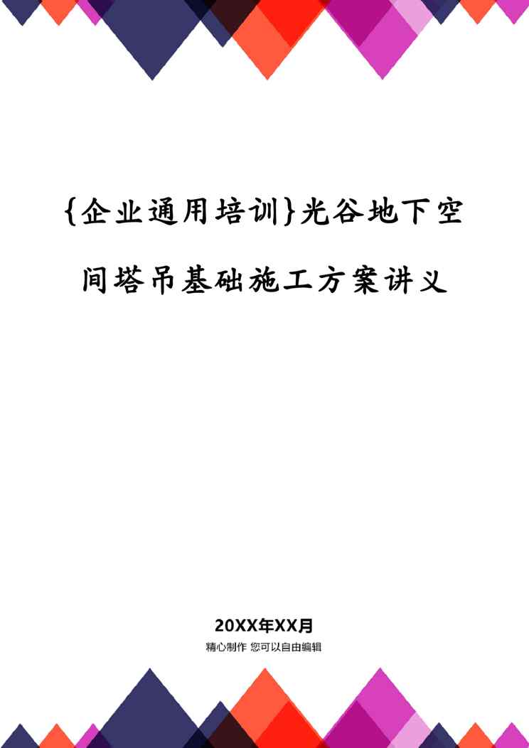 本站资深用户发布了最新的《{企业通用培训}光谷地下空间塔吊基础施工方案讲义》文档,以下内容为预览,详细内容可下载阅读。 声明:本站所有文章,如无特殊说明或标注,均为本站原创发布。任何个人或组织,在未征得本站同意时,禁止复制、盗用、采集、发布本站内容到任何网站、书籍等各类媒体平台。如若本站内容侵犯了原著者的合法权益,可联系我们进行处理。