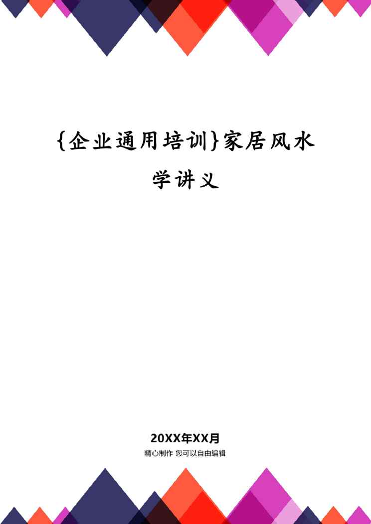 不久前,最新文档《{企业通用培训}家居风水学讲义》全文正式在本站发布,感兴趣的用户可以下载阅读。 声明:本站所有文章,如无特殊说明或标注,均为本站原创发布。任何个人或组织,在未征得本站同意时,禁止复制、盗用、采集、发布本站内容到任何网站、书籍等各类媒体平台。如若本站内容侵犯了原著者的合法权益,可联系我们进行处理。