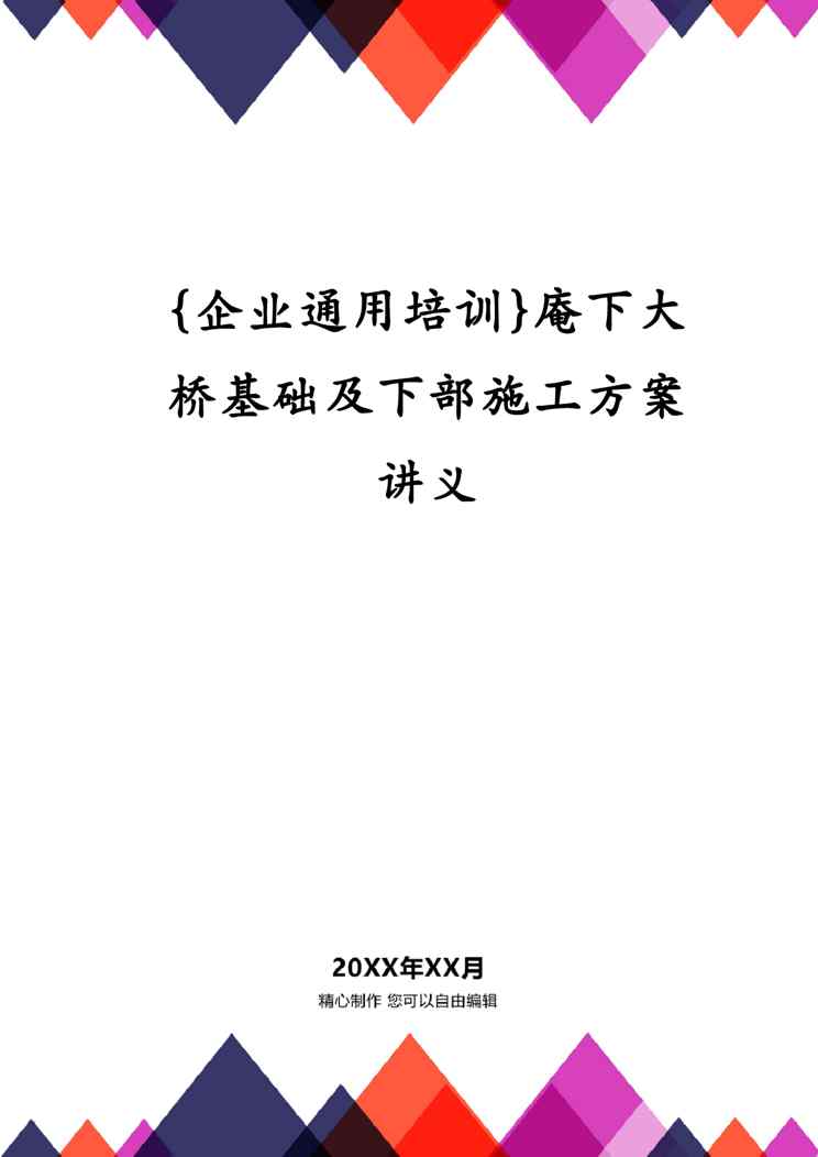 本站正式发布了《{企业通用培训}庵下大桥基础及下部施工方案讲义》文档,文档详细内容可下载阅读。 声明:本站所有文章,如无特殊说明或标注,均为本站原创发布。任何个人或组织,在未征得本站同意时,禁止复制、盗用、采集、发布本站内容到任何网站、书籍等各类媒体平台。如若本站内容侵犯了原著者的合法权益,可联系我们进行处理。