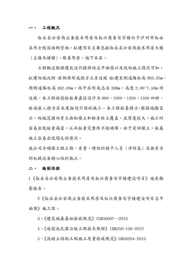 本站资深用户发布了最新的《{企业通用培训}旋挖灌注桩施工方案讲义》文档,以下内容为预览,详细内容可下载阅读。 声明:本站所有文章,如无特殊说明或标注,均为本站原创发布。任何个人或组织,在未征得本站同意时,禁止复制、盗用、采集、发布本站内容到任何网站、书籍等各类媒体平台。如若本站内容侵犯了原著者的合法权益,可联系我们进行处理。
