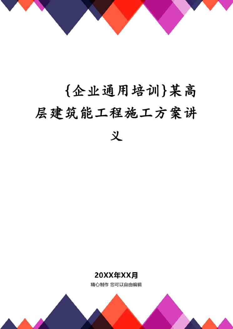 本站资深用户发布了最新的《{企业通用培训}某高层建筑能工程施工方案讲义》文档,以下内容为预览,详细内容可下载阅读。 声明:本站所有文章,如无特殊说明或标注,均为本站原创发布。任何个人或组织,在未征得本站同意时,禁止复制、盗用、采集、发布本站内容到任何网站、书籍等各类媒体平台。如若本站内容侵犯了原著者的合法权益,可联系我们进行处理。