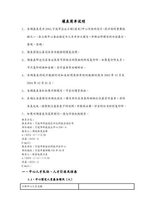 本站正式发布了《{工程建筑套表}宁波市企业工程中心评估调查表汇编》文档,文档详细内容可下载阅读。 声明:本站所有文章,如无特殊说明或标注,均为本站原创发布。任何个人或组织,在未征得本站同意时,禁止复制、盗用、采集、发布本站内容到任何网站、书籍等各类媒体平台。如若本站内容侵犯了原著者的合法权益,可联系我们进行处理。