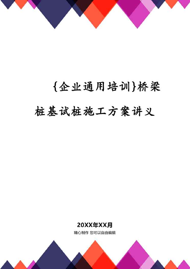 不久前,最新文档《{企业通用培训}桥梁桩基试桩施工方案讲义》全文正式在本站发布,感兴趣的用户可以下载阅读。 声明:本站所有文章,如无特殊说明或标注,均为本站原创发布。任何个人或组织,在未征得本站同意时,禁止复制、盗用、采集、发布本站内容到任何网站、书籍等各类媒体平台。如若本站内容侵犯了原著者的合法权益,可联系我们进行处理。