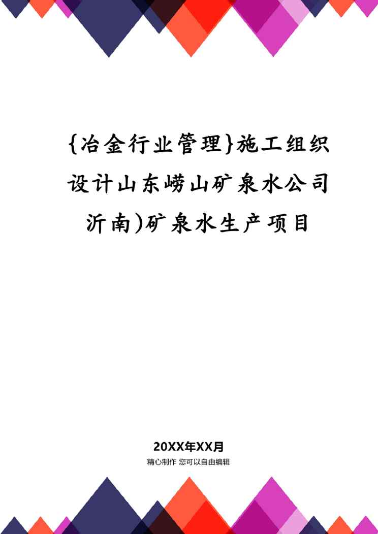 不久前,最新文档《{冶金行业管理}施工组织设计山东崂山矿泉水公司沂南)矿泉水生产项目》全文正式在本站发布,感兴趣的用户可以下载阅读。 声明:本站所有文章,如无特殊说明或标注,均为本站原创发布。任何个人或组织,在未征得本站同意时,禁止复制、盗用、采集、发布本站内容到任何网站、书籍等各类媒体平台。如若本站内容侵犯了原著者的合法权益,可联系我们进行处理。