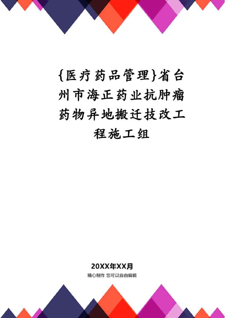 不久前,最新文档《{医疗药品管理}省台州市海正药业抗肿瘤药物异地搬迁技改工程施工组》全文正式在本站发布,感兴趣的用户可以下载阅读。 声明:本站所有文章,如无特殊说明或标注,均为本站原创发布。任何个人或组织,在未征得本站同意时,禁止复制、盗用、采集、发布本站内容到任何网站、书籍等各类媒体平台。如若本站内容侵犯了原著者的合法权益,可联系我们进行处理。