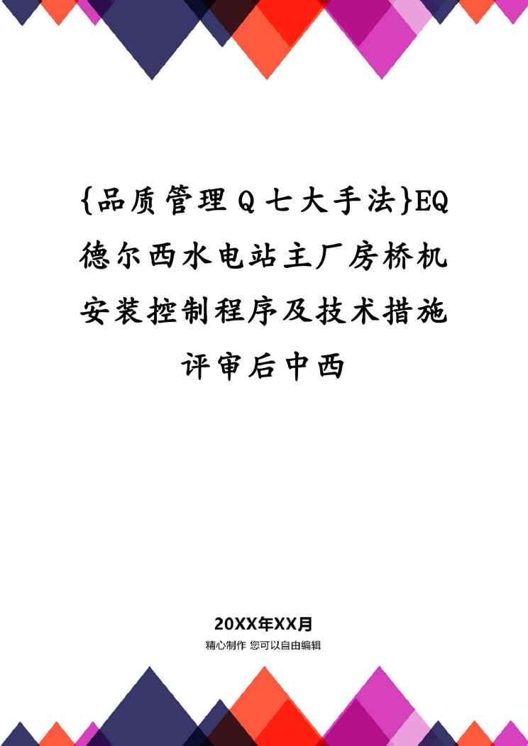 本站正式发布了《{品质管理Q七大手法}EQ德尔西水电站主厂房桥机安装控制程序及技术措施评审后中西》文档,文档详细内容可下载阅读。 声明:本站所有文章,如无特殊说明或标注,均为本站原创发布。任何个人或组织,在未征得本站同意时,禁止复制、盗用、采集、发布本站内容到任何网站、书籍等各类媒体平台。如若本站内容侵犯了原著者的合法权益,可联系我们进行处理。