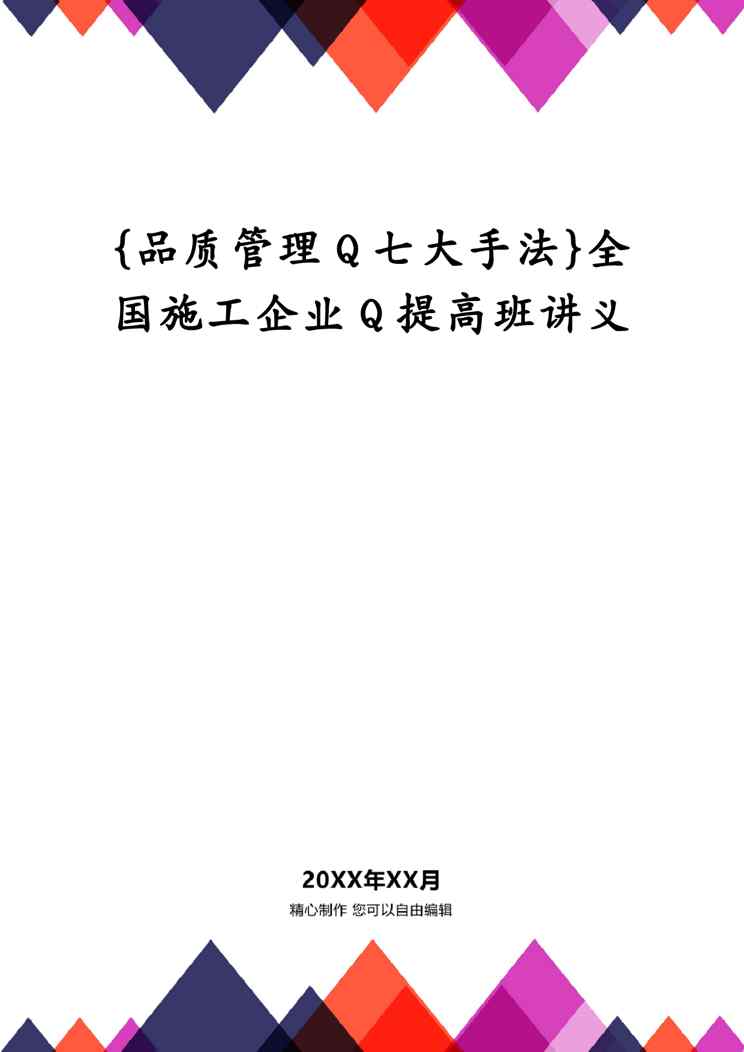 不久前,最新文档《{品质管理Q七大手法}全国施工企业Q提高班讲义》全文正式在本站发布,感兴趣的用户可以下载阅读。 声明:本站所有文章,如无特殊说明或标注,均为本站原创发布。任何个人或组织,在未征得本站同意时,禁止复制、盗用、采集、发布本站内容到任何网站、书籍等各类媒体平台。如若本站内容侵犯了原著者的合法权益,可联系我们进行处理。