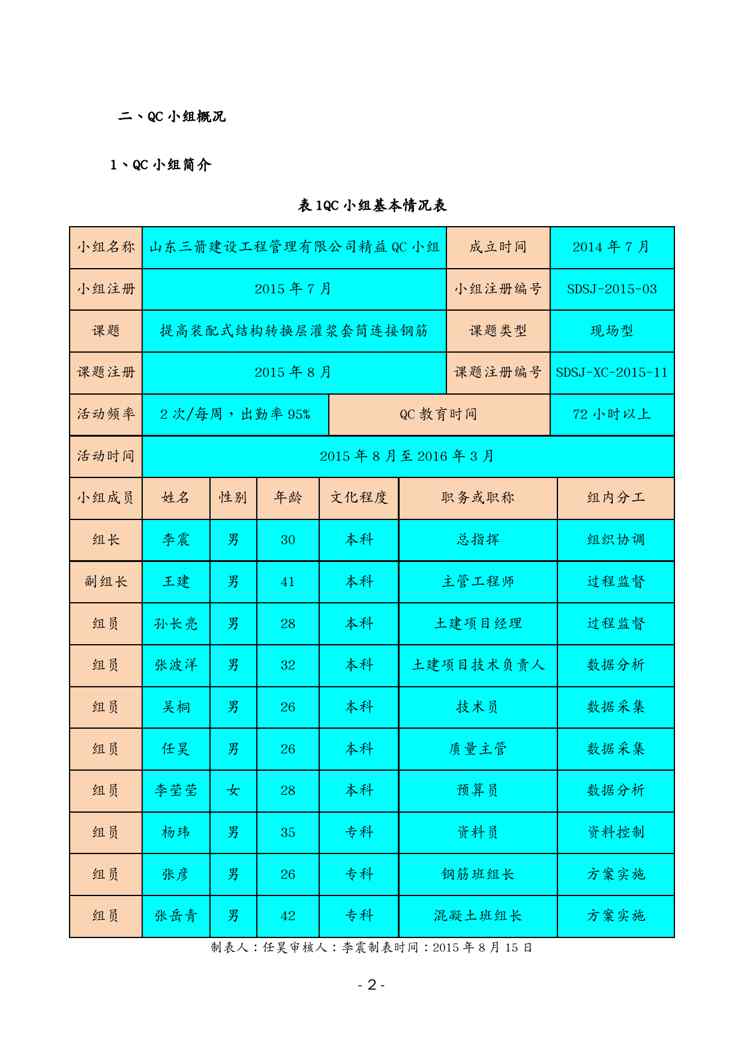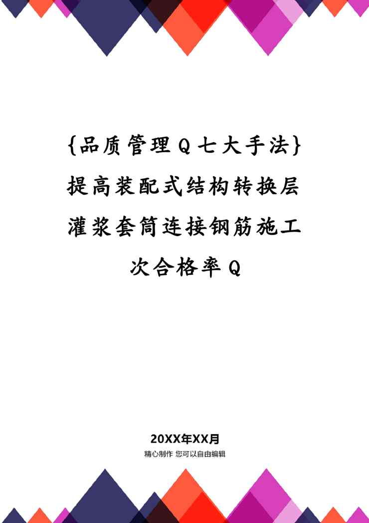 本站正式发布了《{品质管理Q七大手法}提高装配式结构转换层灌浆套筒连接钢筋施工次合格率Q》文档,文档详细内容可下载阅读。 声明:本站所有文章,如无特殊说明或标注,均为本站原创发布。任何个人或组织,在未征得本站同意时,禁止复制、盗用、采集、发布本站内容到任何网站、书籍等各类媒体平台。如若本站内容侵犯了原著者的合法权益,可联系我们进行处理。