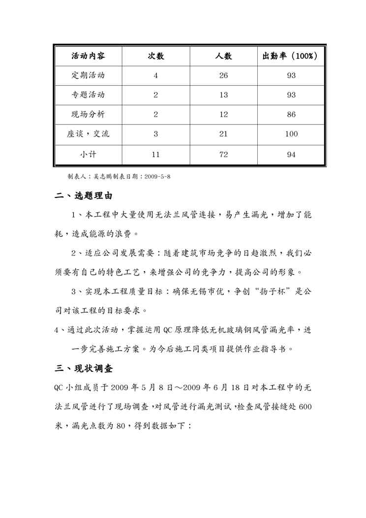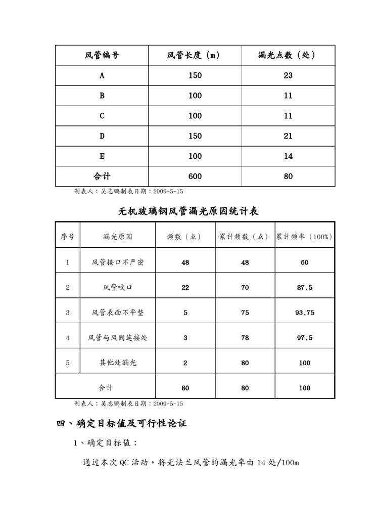 不久前,最新文档《{品质管理Q七大手法}运用Q原理降低无机玻璃钢风管漏光率》全文正式在本站发布,感兴趣的用户可以下载阅读。 声明:本站所有文章,如无特殊说明或标注,均为本站原创发布。任何个人或组织,在未征得本站同意时,禁止复制、盗用、采集、发布本站内容到任何网站、书籍等各类媒体平台。如若本站内容侵犯了原著者的合法权益,可联系我们进行处理。