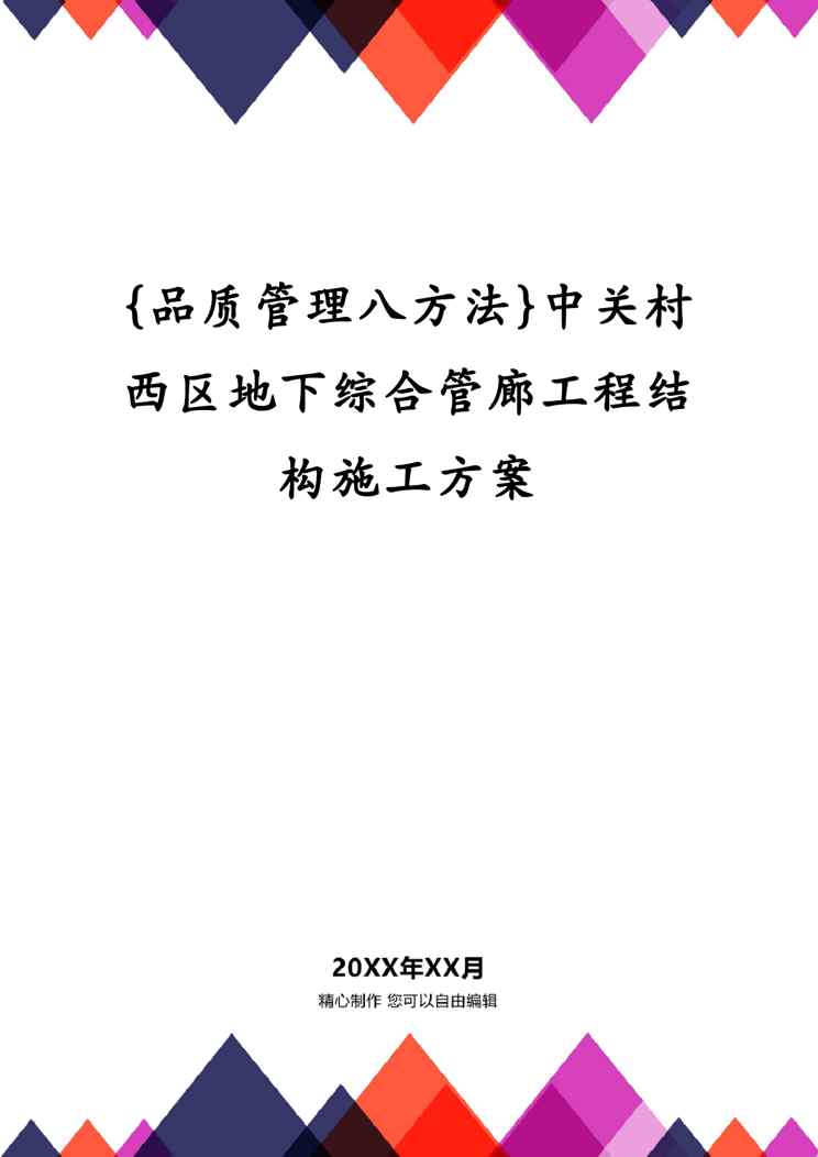 本站资深用户发布了最新的《{品质管理八方法}中关村西区地下综合管廊工程结构施工方案》文档,以下内容为预览,详细内容可下载阅读。 声明:本站所有文章,如无特殊说明或标注,均为本站原创发布。任何个人或组织,在未征得本站同意时,禁止复制、盗用、采集、发布本站内容到任何网站、书籍等各类媒体平台。如若本站内容侵犯了原著者的合法权益,可联系我们进行处理。