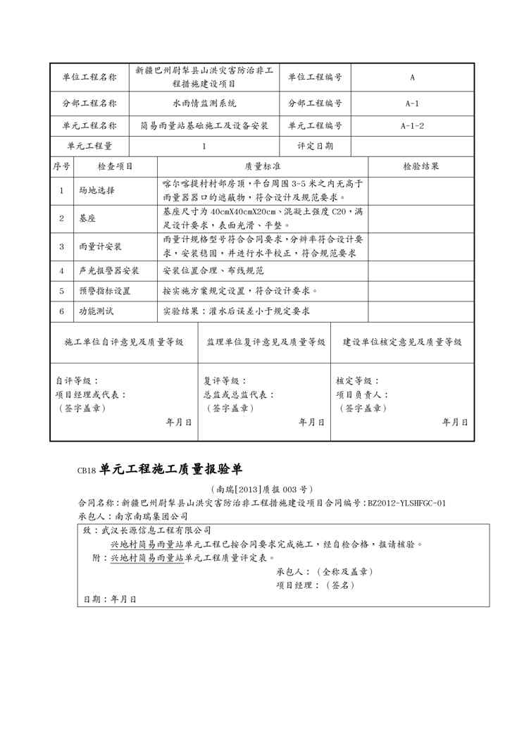 本站正式发布了《{品质管理制度表格}B单元工程施工质量报验单评定表团》文档,文档详细内容可下载阅读。 声明:本站所有文章,如无特殊说明或标注,均为本站原创发布。任何个人或组织,在未征得本站同意时,禁止复制、盗用、采集、发布本站内容到任何网站、书籍等各类媒体平台。如若本站内容侵犯了原著者的合法权益,可联系我们进行处理。